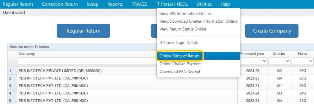 Click on Online Filing of Return under IT PORTAL / NSDL