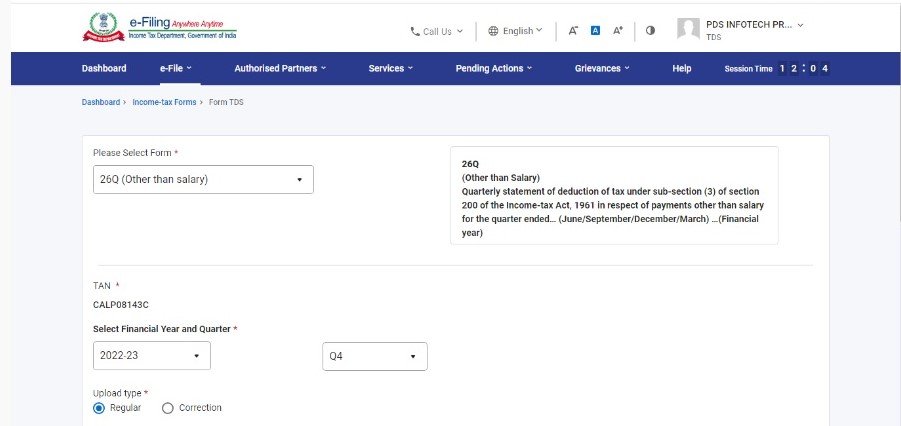 Upload Type – Select the upload type (Regular Return / Correction Return)