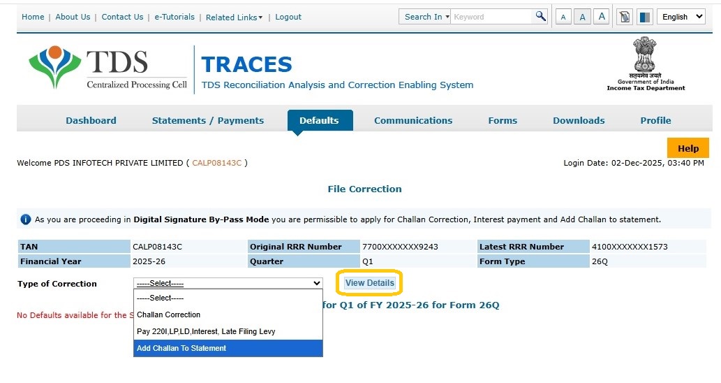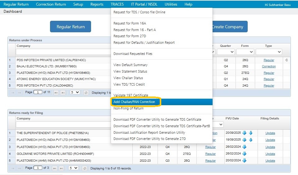 There are certain types of ‘Corrections’ on TDS / TCS Returns that may be done directly on TRACES web portal instead of going through filing of the ‘Correction Return’ These include ‘Add Challan’ and ‘PAN Correction’.