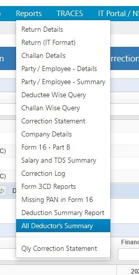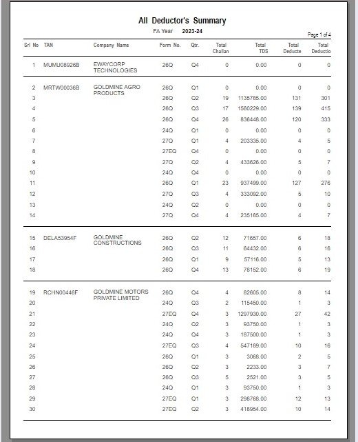 This report provides the summarized information, regarding the Returns, of all the deductors for any selected financial year.