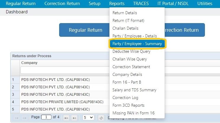 Select the Deductee or Employees from the Deductee/Employee list, for which the summary have to be displayed, user can either select them individual, multiple or altogether. Then click on Show Report .