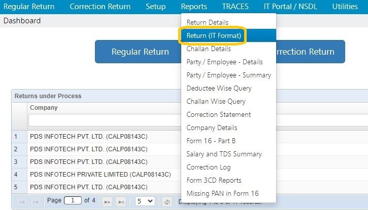 Click on Show Report. The details of the Return as per the IT format will get displayed as shown below: