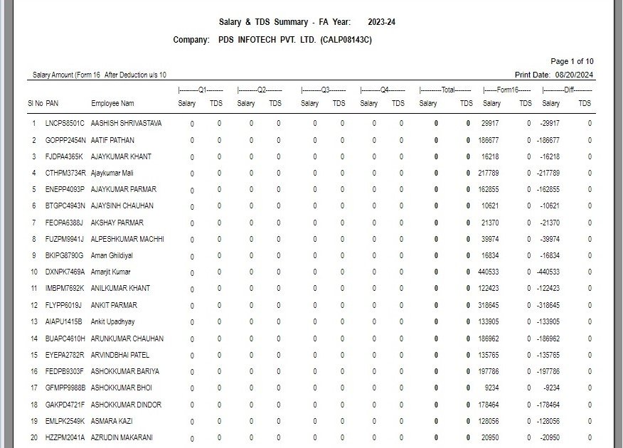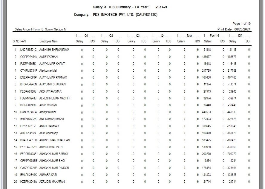 If ‘After deduction u/s 10’ is selected the following report will get generated :