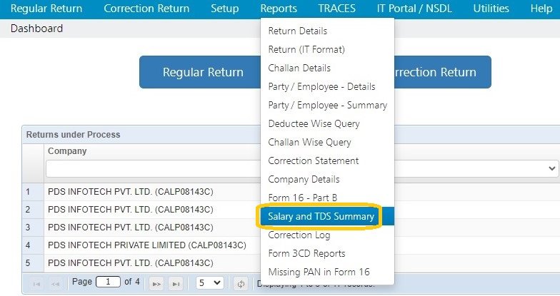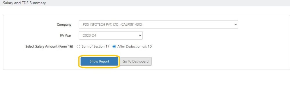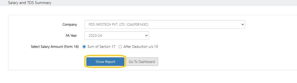 The system provides the option to generate this report either on ‘Sum of Section 17’ or ‘After Deduction u/s 10’